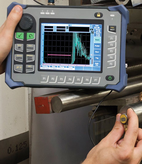 Traditional Ultrasonic inspection uses high frequency sound energy to conduct examinations and perform measurements. Considerable information may be gathered during ultrasonic testing such as the presence of discontinuities, material or coating thickness. The detection and location of discontinuities is enabled by the interpretation of ultrasonic wave reflections generated by a transducer. These waves are introduced into a material and travel in a straight line and at a constant speed until they encounter a surface. The surface interface causes some of the wave energy to be reflected and the rest of it to be transmitted. The amount of reflected vs. transmitted energy is detected and provides information on the size of the reflector, & therefore the discontinuity encountered. Three basic ultrasonic techniques are commonly used: Pulse-echo and through transmission Normal/Angle Beam Contact and Immersion